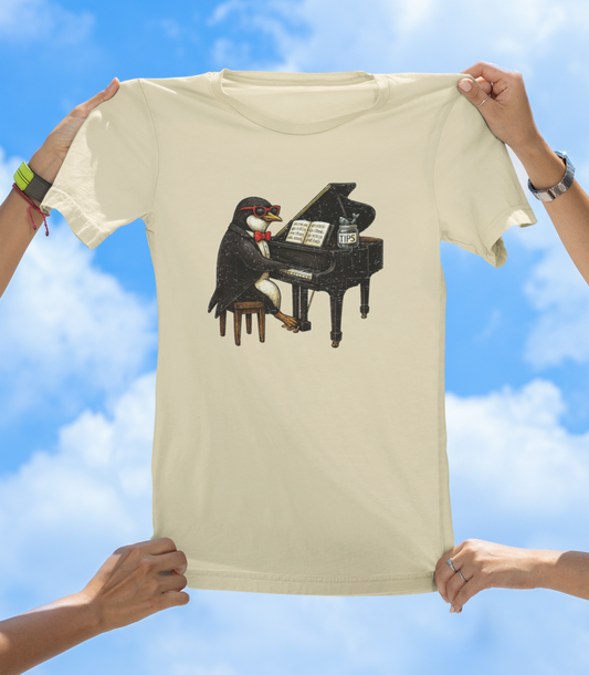 Penguin Playing Piano T-Shirt – Funny Music Lover Graphic Tee