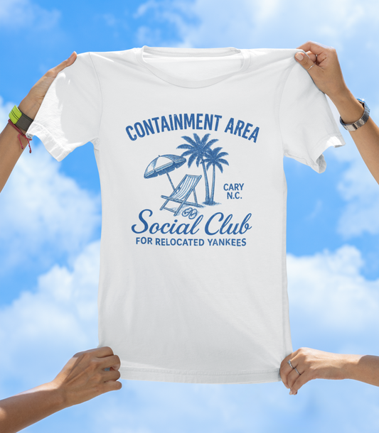 Containment Area Social Club T-Shirt — For Relocated Yankees in Cary, NC