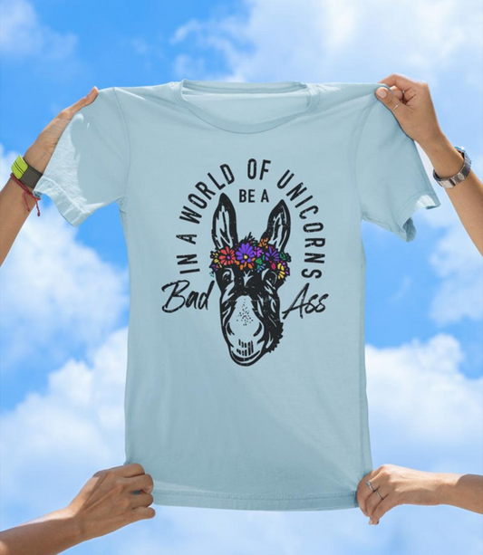 Be a Bad Ass T-Shirt | Funny Donkey Flower Crown Graphic Tee