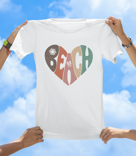 Beach Heart T-Shirt | Retro Sunset Beach Vibes Tee