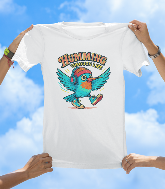 Humming Through Life T-Shirt | Funny Cool Bird Graphic Tee