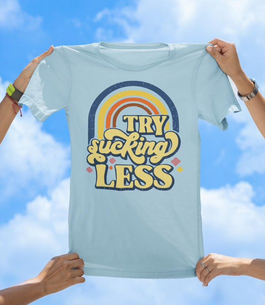 Try Sucking Less T-Shirt | Funny Retro Rainbow Graphic Tee